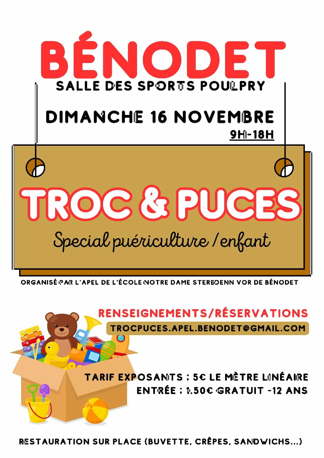 Le dimanche 16 novembre aura lieu le troc et puce organisé par l'APEL de l'école Notre Dame de Stereden Vor
